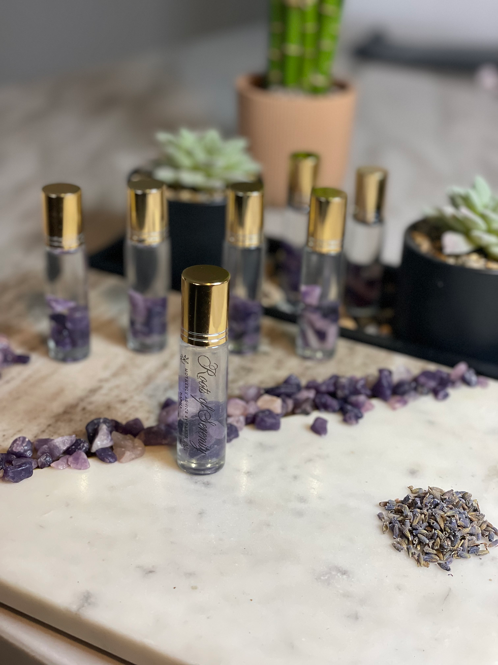 Infused with real lepidolite crystal, lavender, peppermint & coconut oil.
