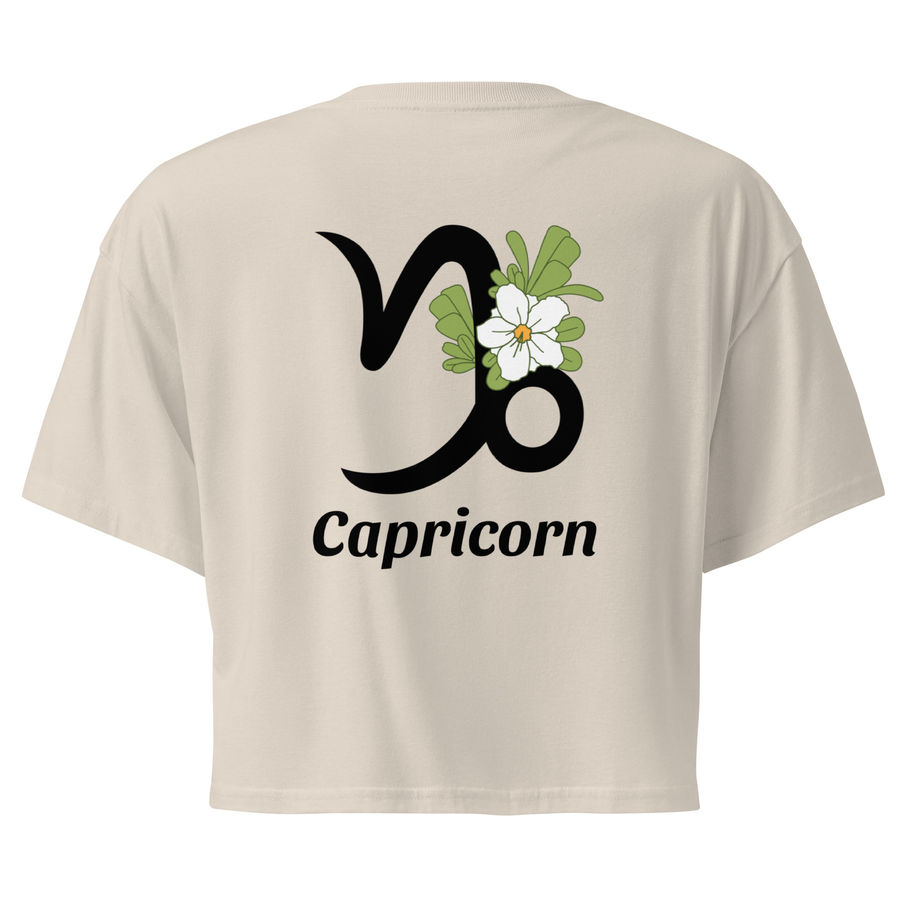This Capricorn-themed crop top is a bold and empowering tribute to the zodiac’s determined energy. The design features a unique illustration of the Desert Rose, symbolizing perseverance, strength, and growth through challenges, intertwined with Capricorn’s resilient and ambitious spirit. The phrase "Power Moves, Bold Wins" is elegantly displayed, reflecting the confident, strategic, and unwavering nature of Capricorn individuals. The artwork blends earthy and modern tones, creating a sleek aesthetic that perfectly complements the crop top’s flattering, trendy fit. Ideal for those who embrace their Capricorn identity with confidence, determination, and a drive for success!